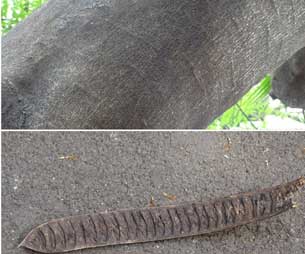 The Gulmohar seed pods grow up to 24 inches long and hold between 20 to 40 seeds at a time.